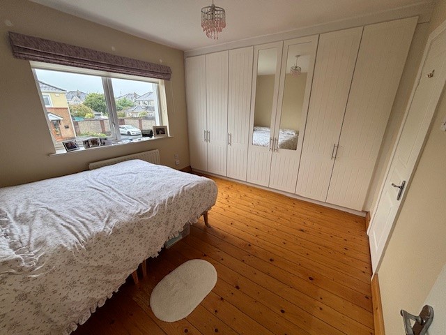 Built in double wardrobes, varnished tongue and groove flooring.