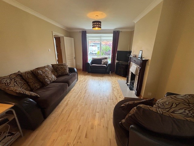 Semi solid flooring, coving, sliding patio door to rear.