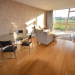 Excellent range of wall and floor units with polished granite work tops, oven and hob, integrated dishwasher, recess lighting, part floor tiling, part oak flooring, recess lighting, door to balcony.